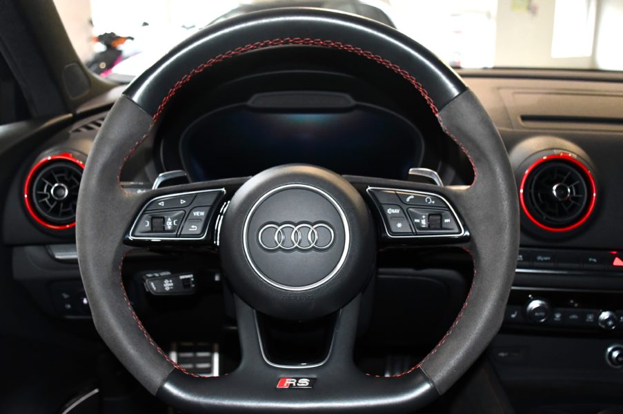 Posez nous vos questions concernant ce véhicule : Audi RS3 Sportback 2.5 TFSI 400 Quattro S-Tronic GPS Bang Olufsen Keyless Magnétic Ride Pré Sense Gros Sièges JA 19 Rotor.