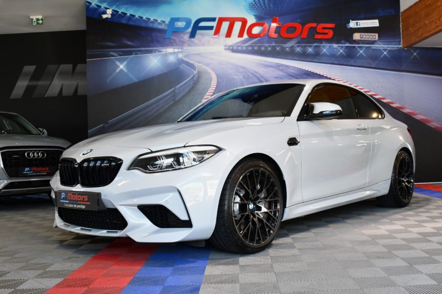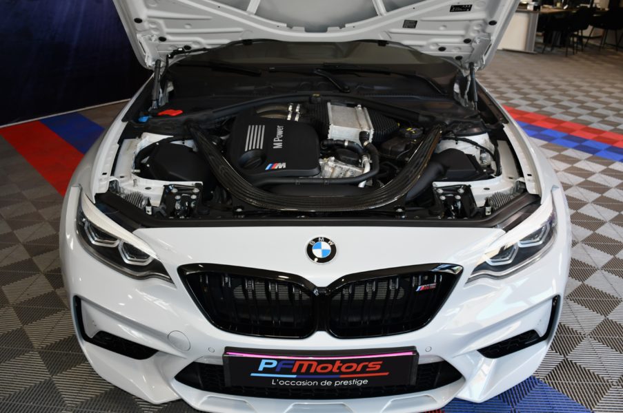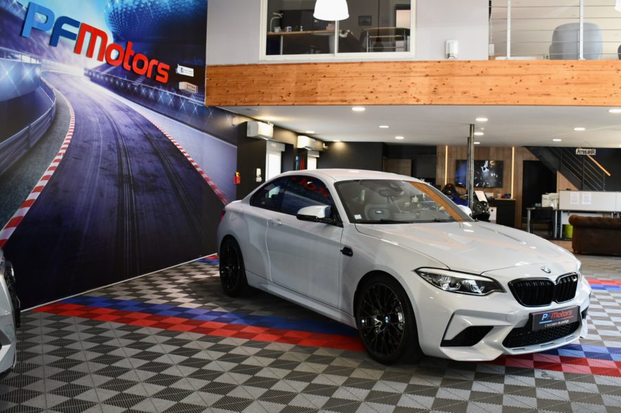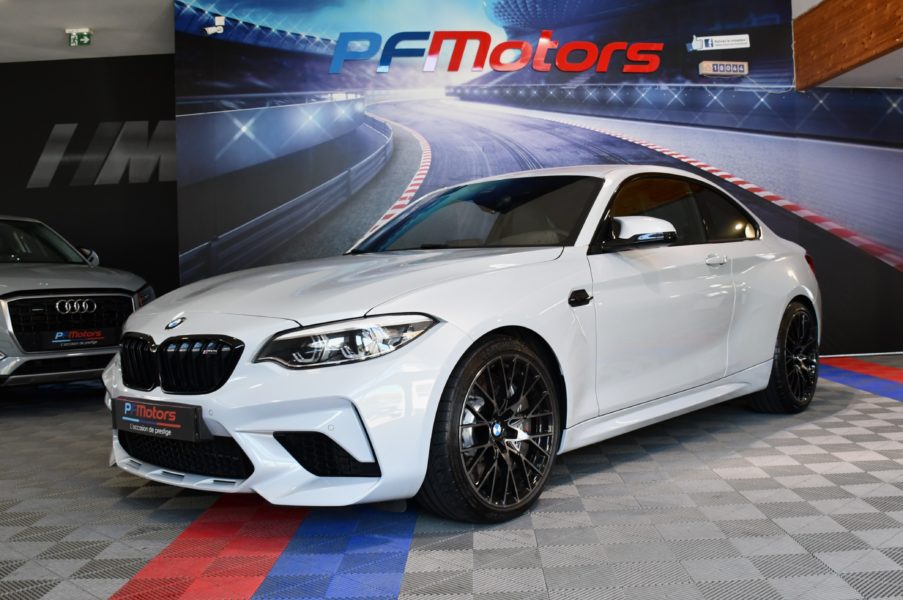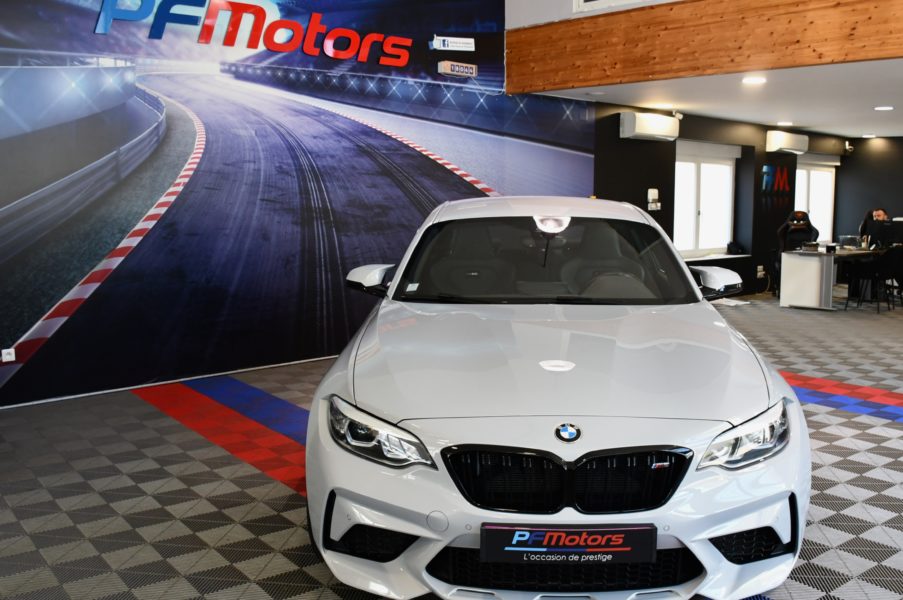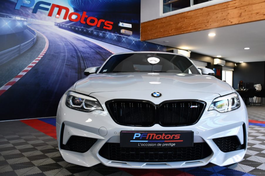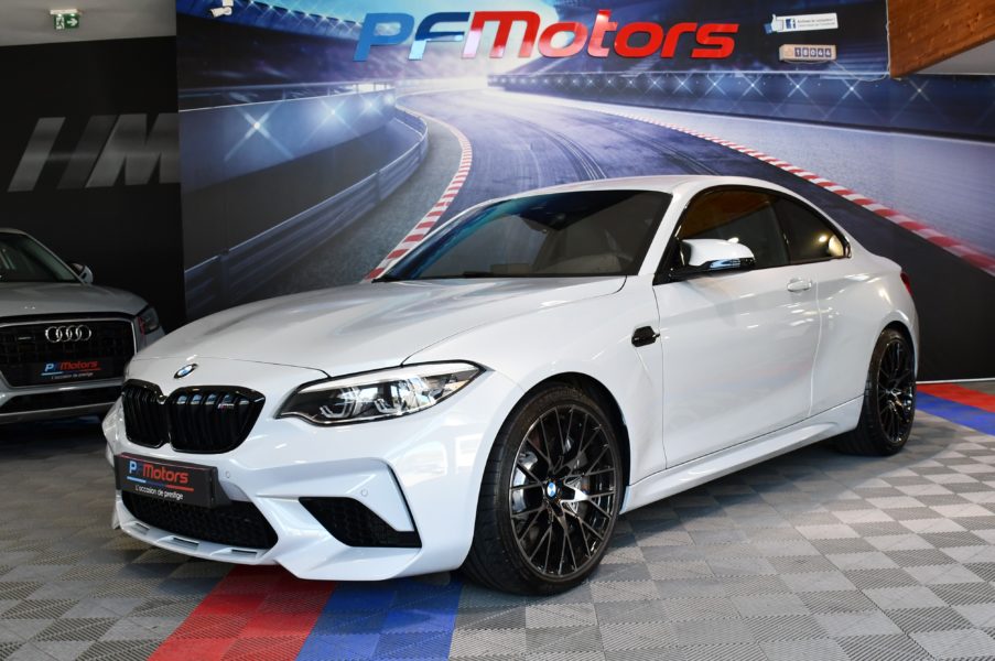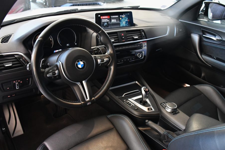 Posez nous vos questions concernant ce véhicule : BMW M2 Compétition 3.0l 411 DKG GPS Bluetooth Mode Sport + Phares LED Cuir JA 19 Gris Hockenheim.