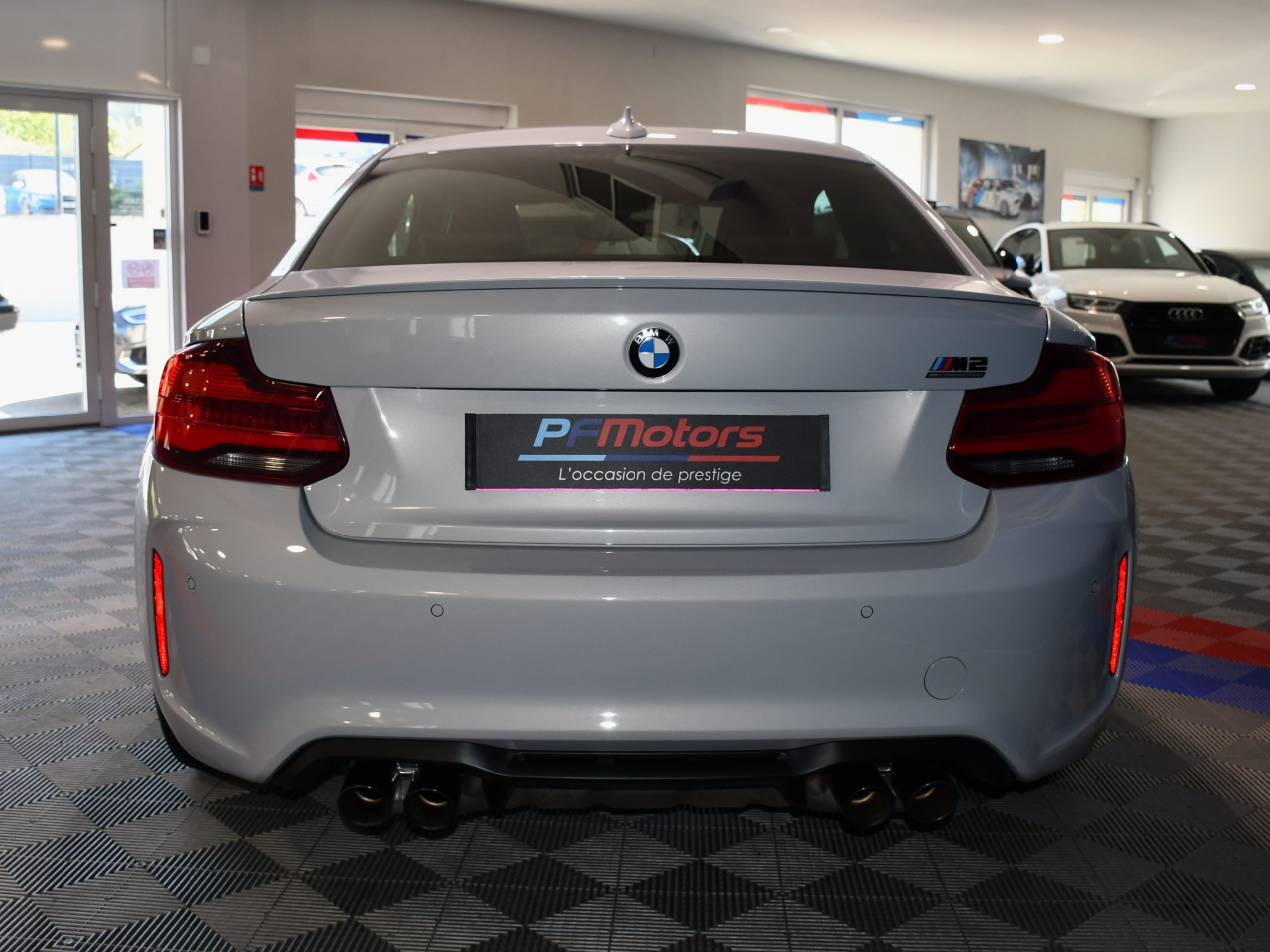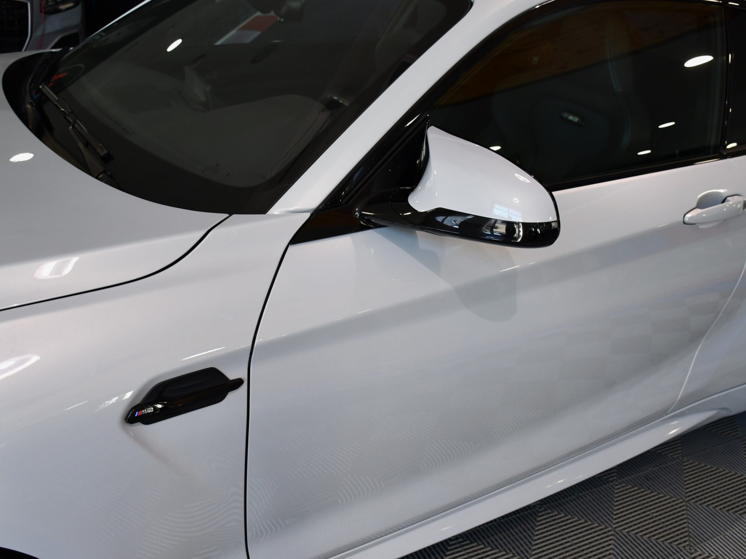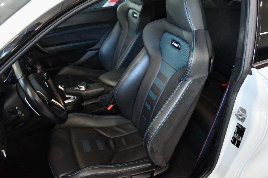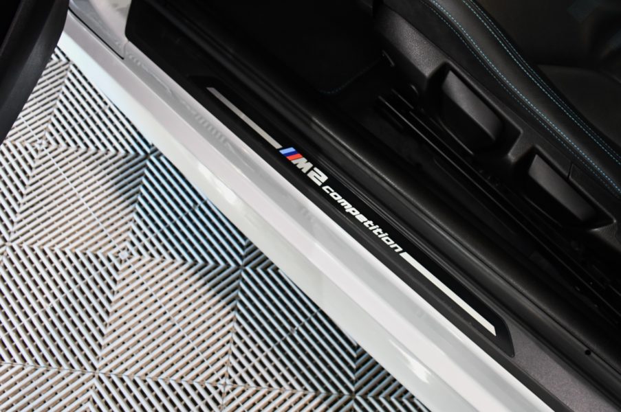 Posez nous vos questions concernant ce véhicule : BMW M2 Compétition 3.0l 411 DKG GPS Bluetooth Mode Sport + Phares LED Cuir JA 19 Gris Hockenheim.