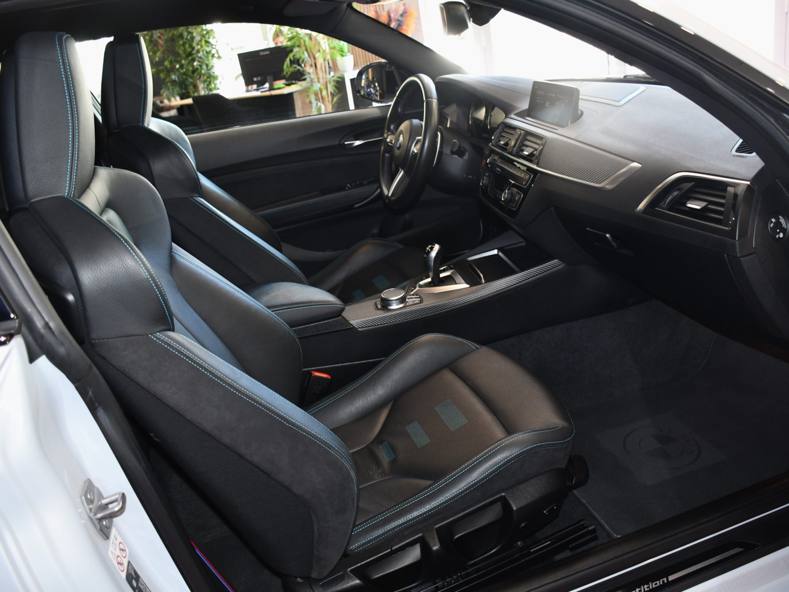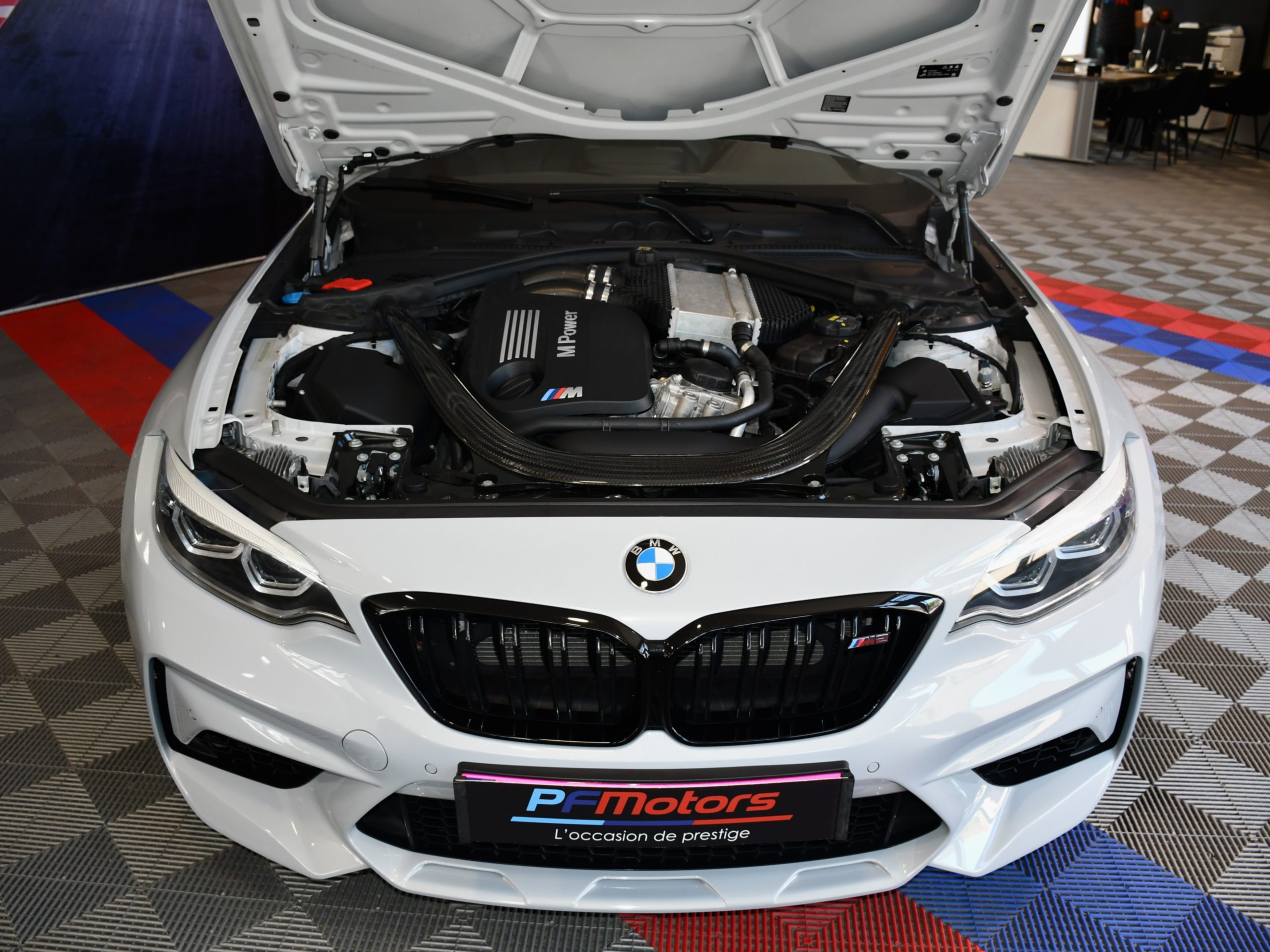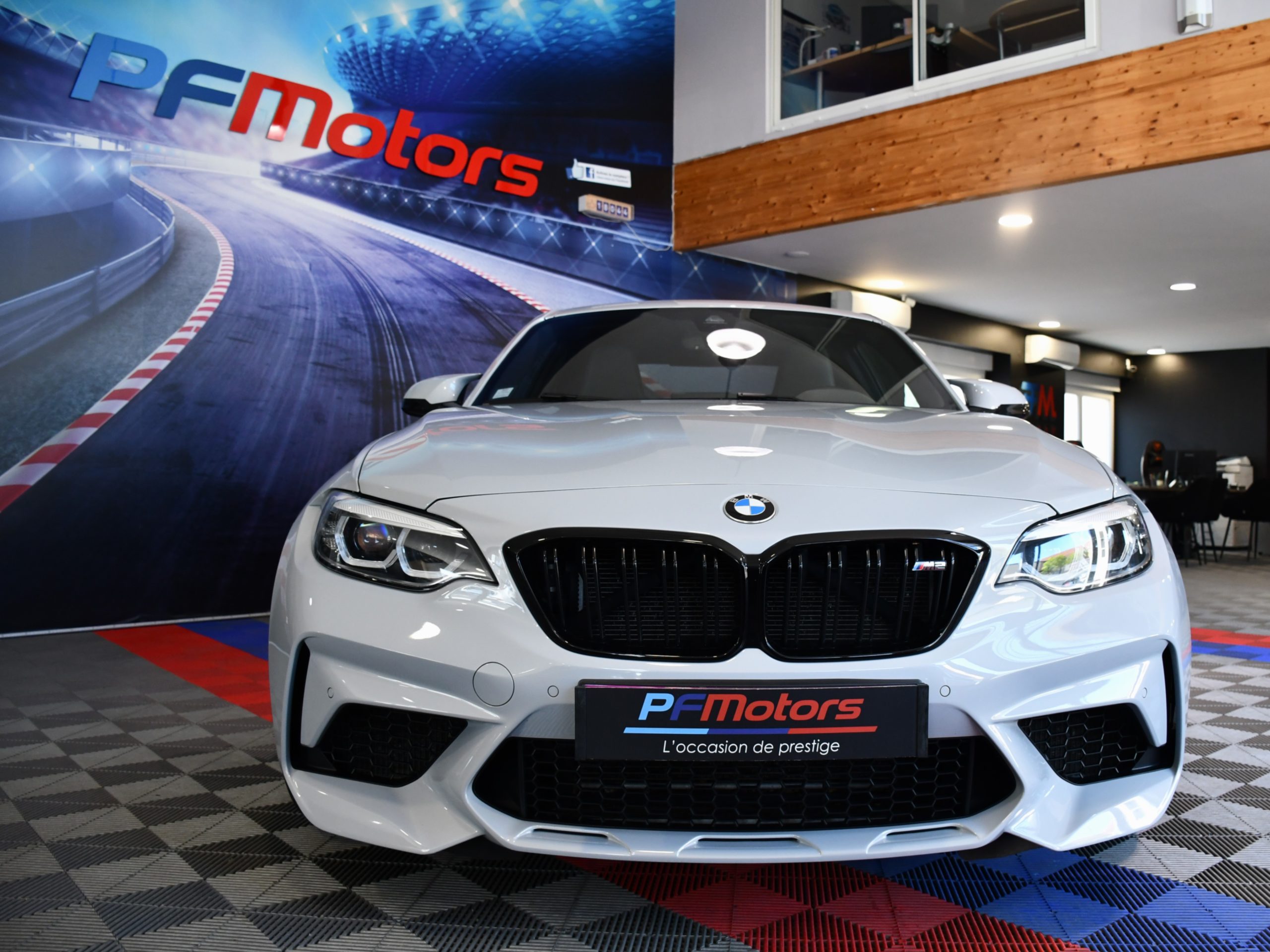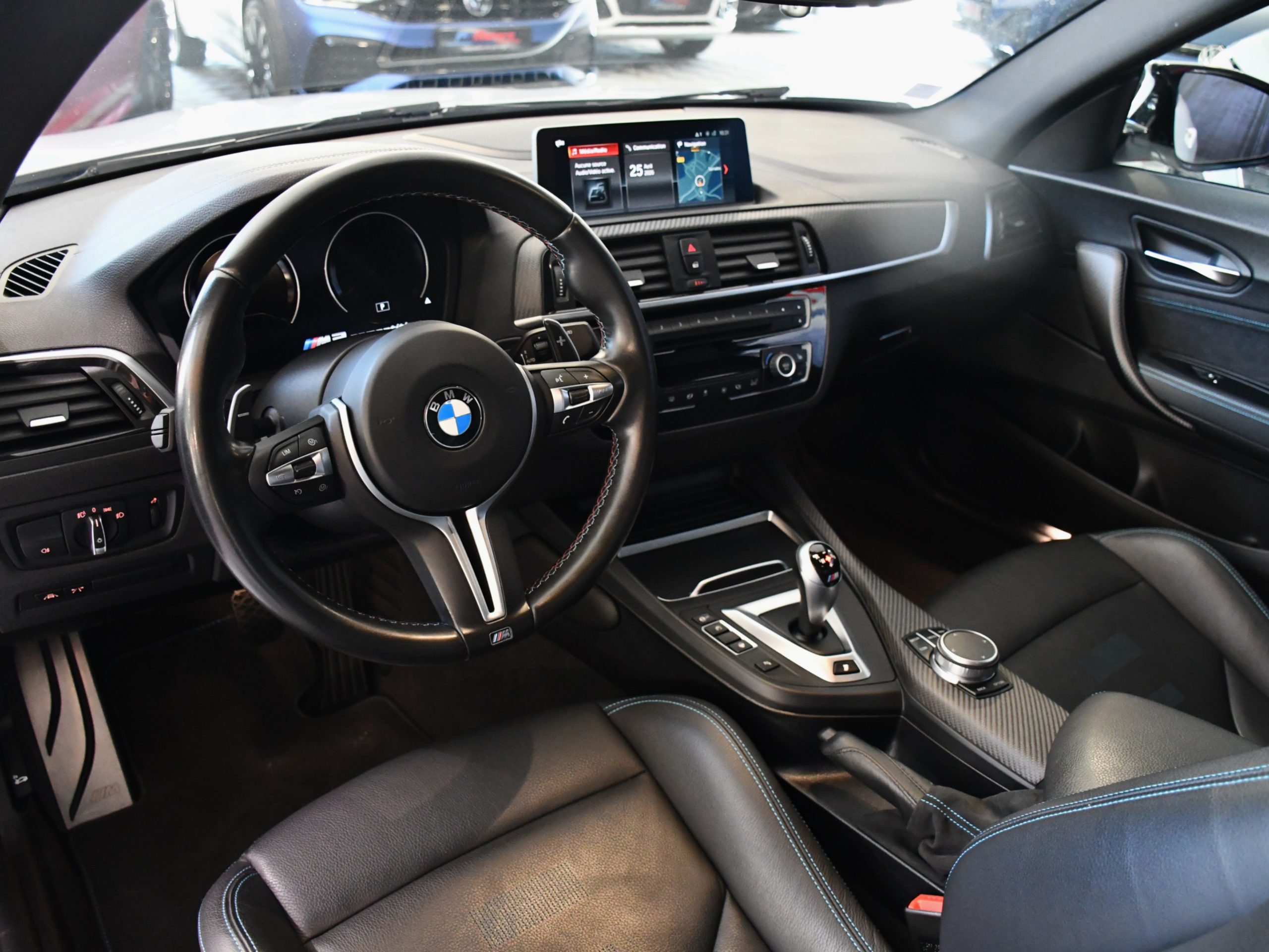 Posez nous vos questions concernant ce véhicule : BMW M2 Compétition 3.0l 411 DKG GPS Bluetooth Mode Sport + Phares LED Cuir JA 19 Gris Hockenheim.