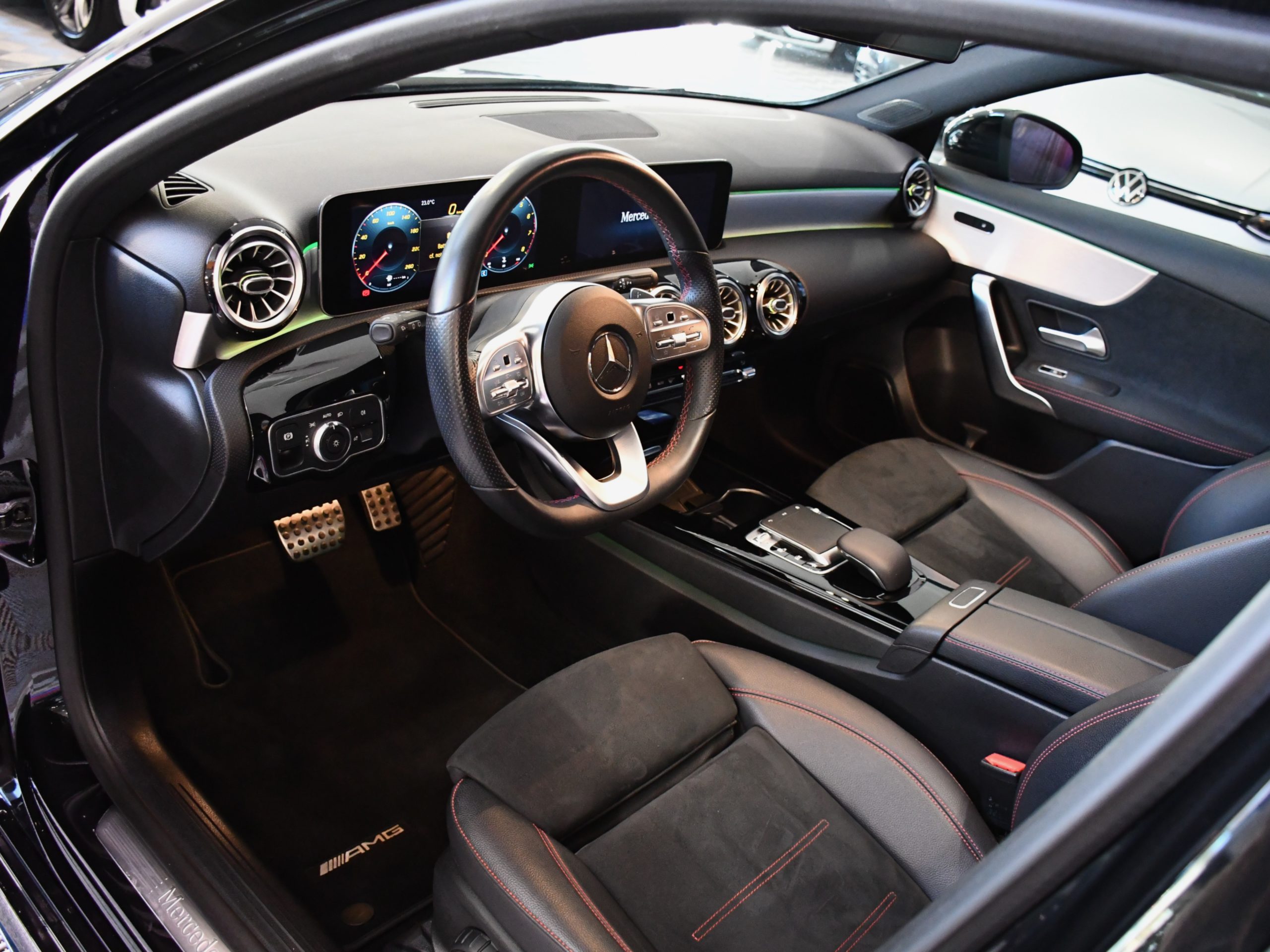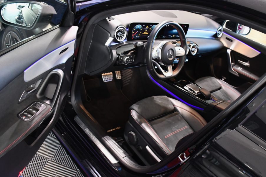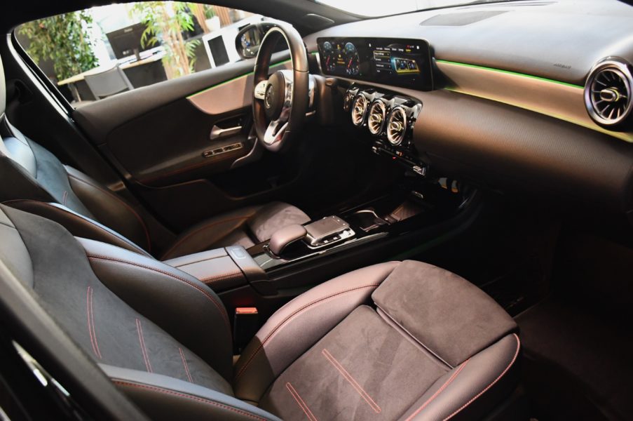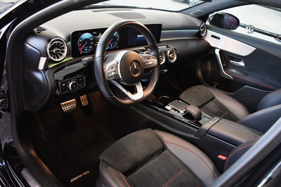 Posez nous vos questions concernant ce véhicule : Mercedes Benz Classe A 220 AMG Line BVA GPS Pro TO M-Bux Lumière D’ambiance LED Car Play Caméra Freinage JA 18.