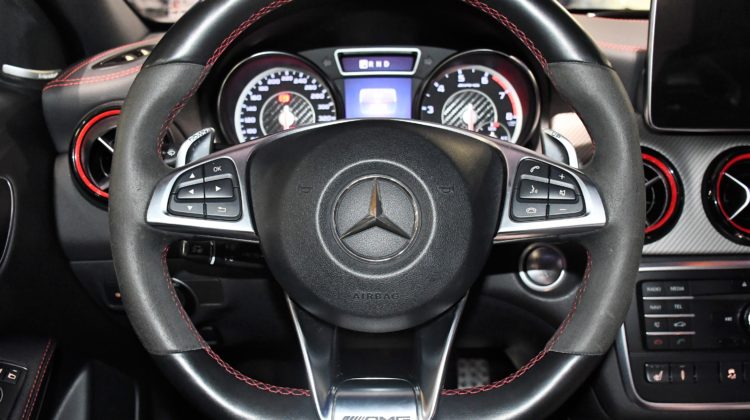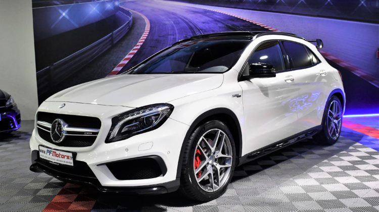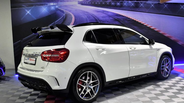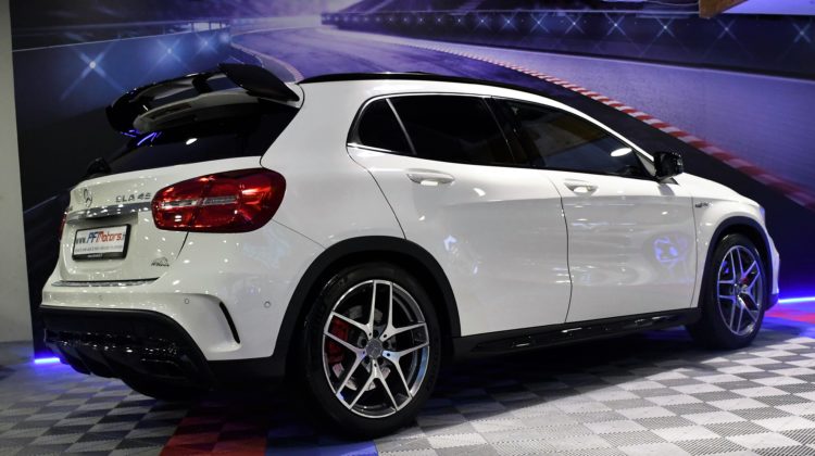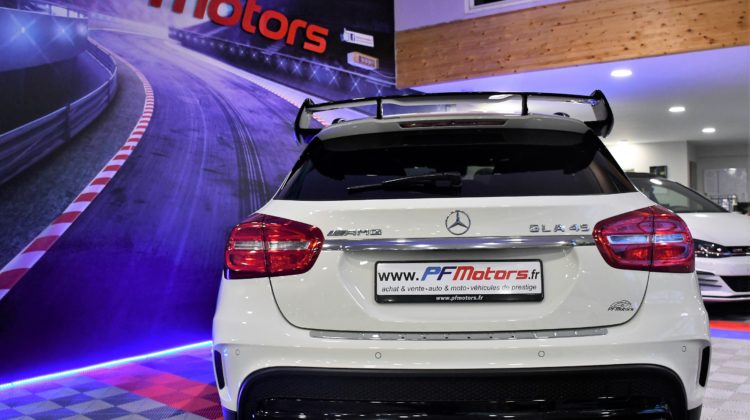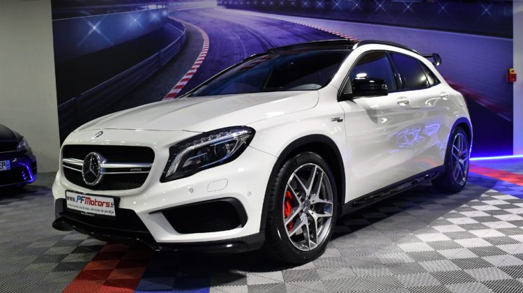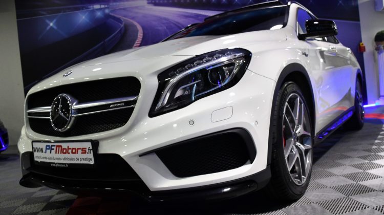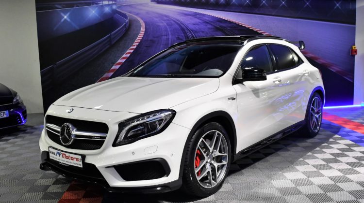 Posez nous vos questions concernant ce véhicule : Mercedes Benz GLA A45 AMG 2.0 Turbo 381 4Matic GPS TO ILS Harman Kardon Hayon Echappement Suspension RECARO Cuir JA 19.