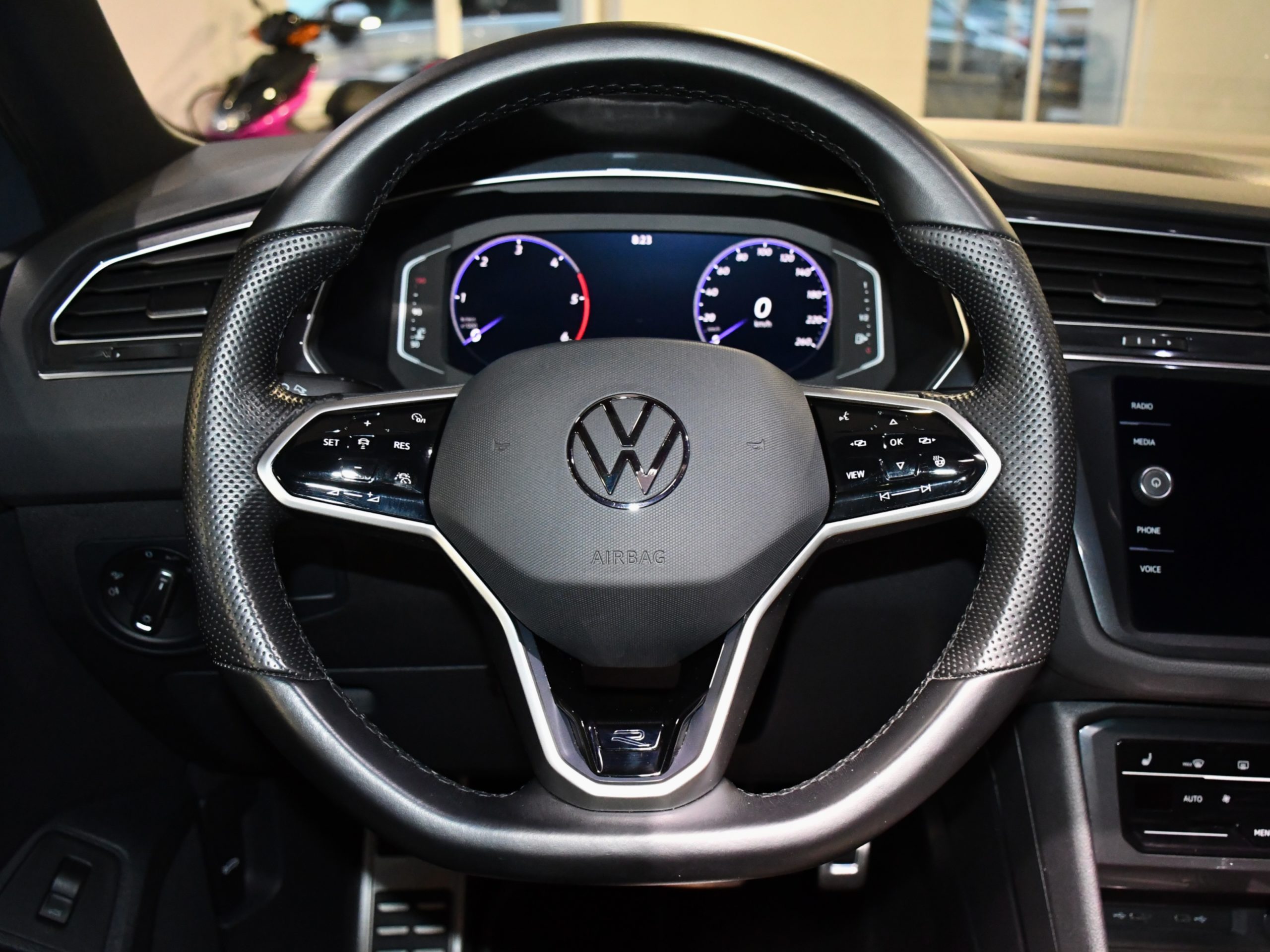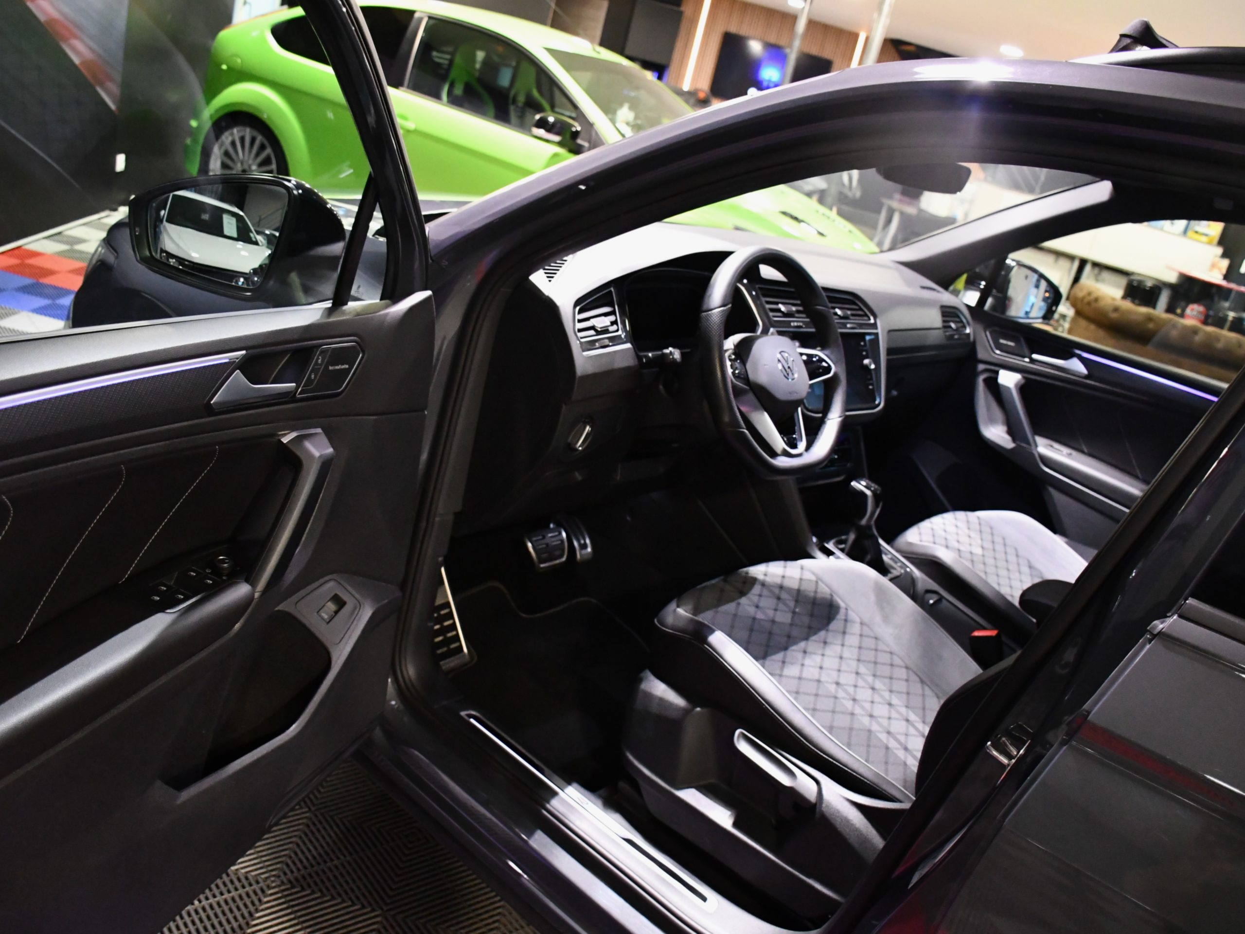 Posez nous vos questions concernant ce véhicule : Volkswagen Tiguan R-Line 2.0 TDI 150 DSG GPS Virtual Hayon TO Caméra ACC IQ Light Lane Side Lumière D’Ambiance Harman Kardon JA 19.
